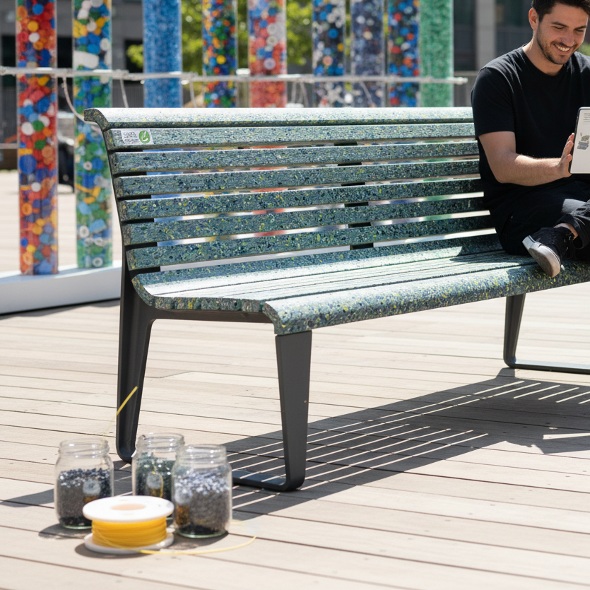 Fabricamos mobiliario urbano, señalética y otros productos duraderos que integran el diseño moderno con la responsabilidad ecológica usando la materia prima que hemos reciclado, o con nuestros Biopolímero 100% ECO, biodegradable y compostable.